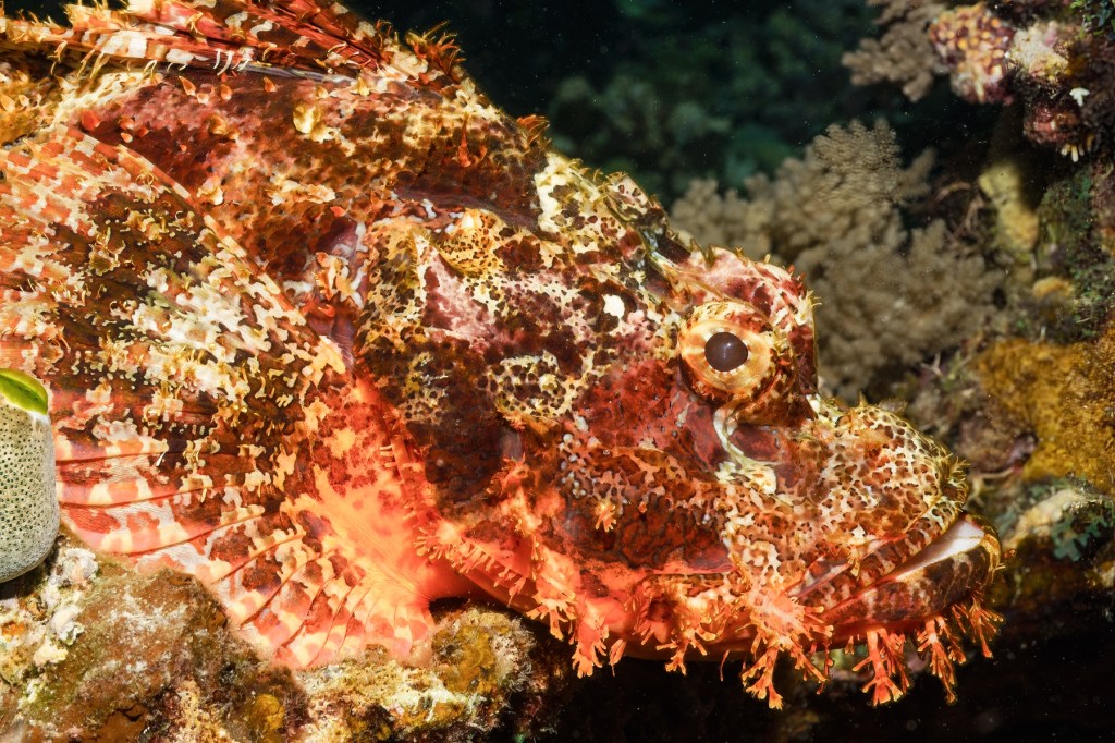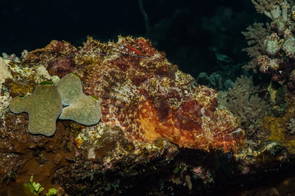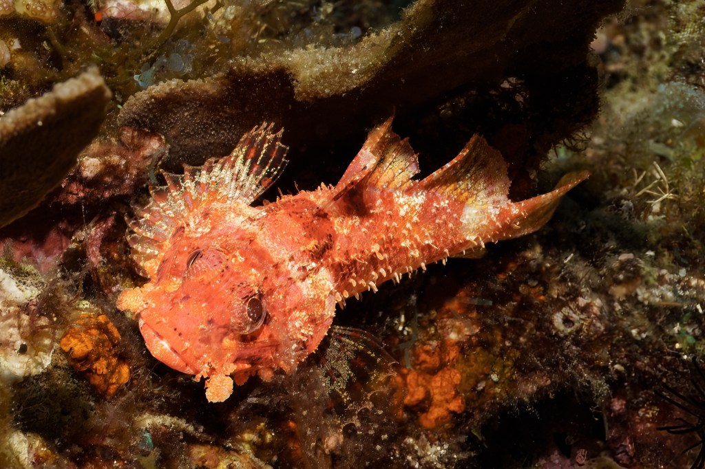 Another bright pink Leaf scorpionfish was lying in ambush, waiting for prey to appear.