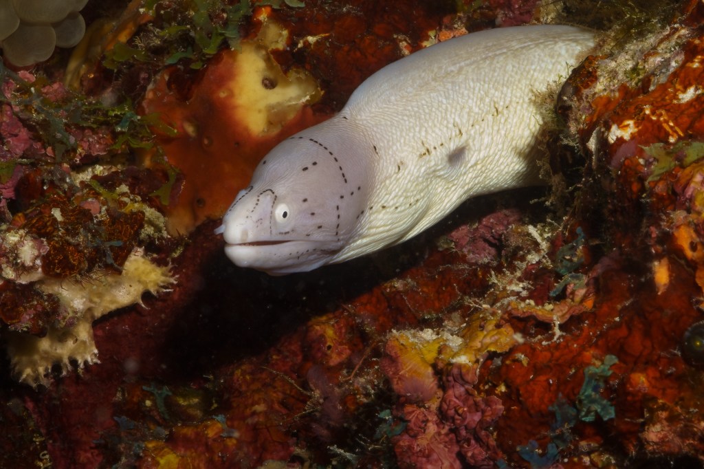 The longer journey proved more than worthwhile. We were rewarded with some breathtaking corals —vivid, intricate, and almost impossible to capture fully in still photographs, especially with a macro setup. Liana’s video (watch in 4K if possible) comes closer to conveying the sheer spectacle, yet even it falls short of the experience in person. With stronger video lighting, perhaps one could come nearer to revealing the true magnificence of that underwater world in full colour. **