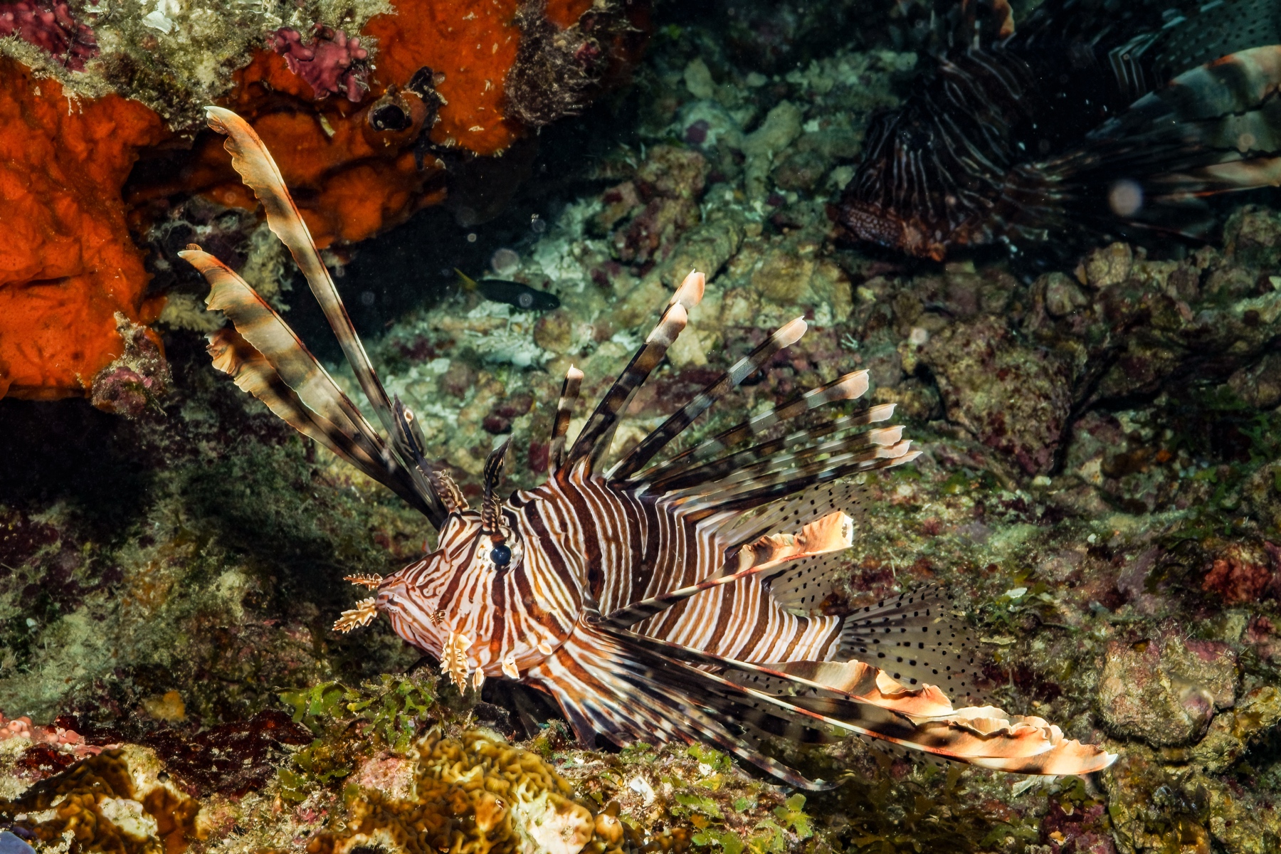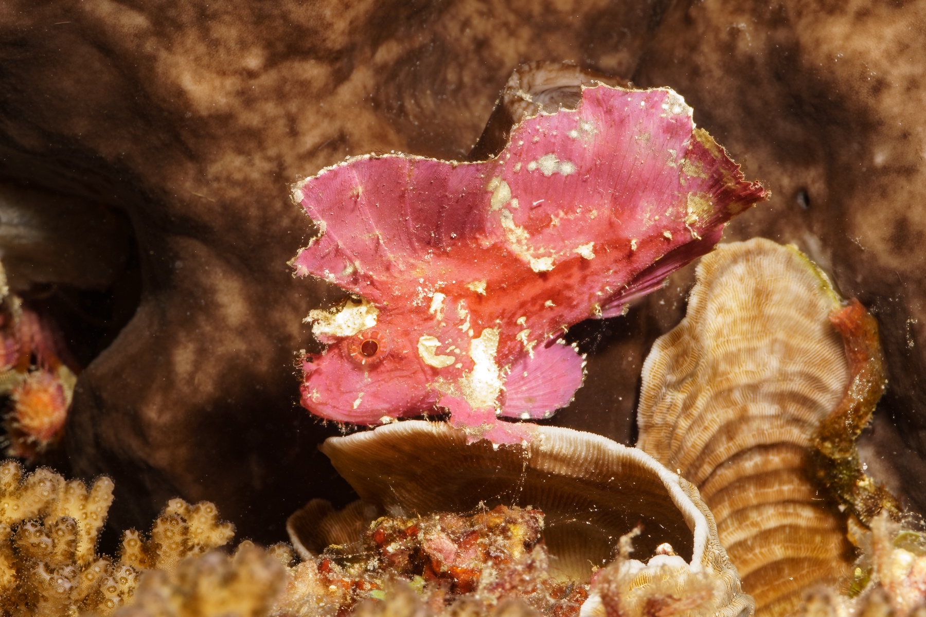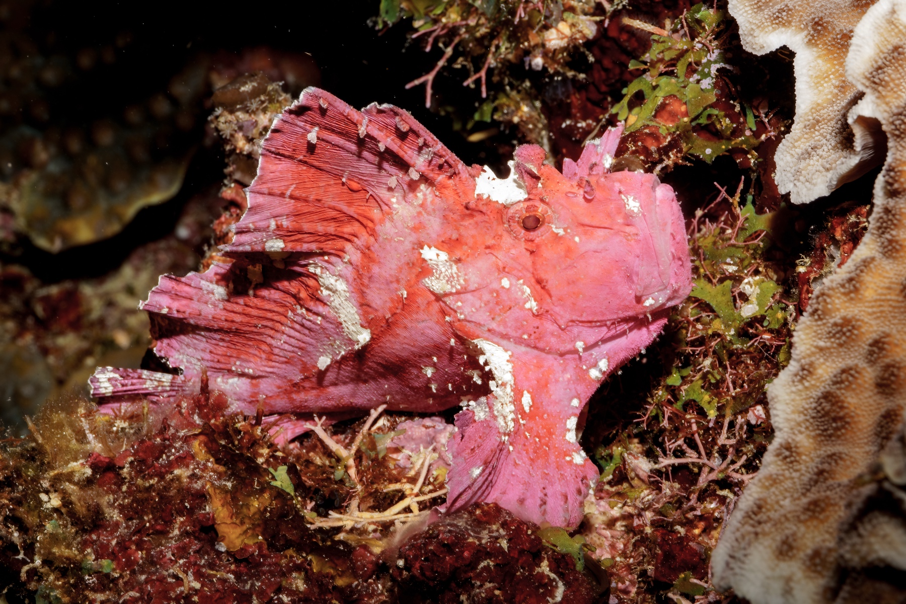Another bright pink Leaf scorpionfish was lying in ambush, waiting for prey to appear.