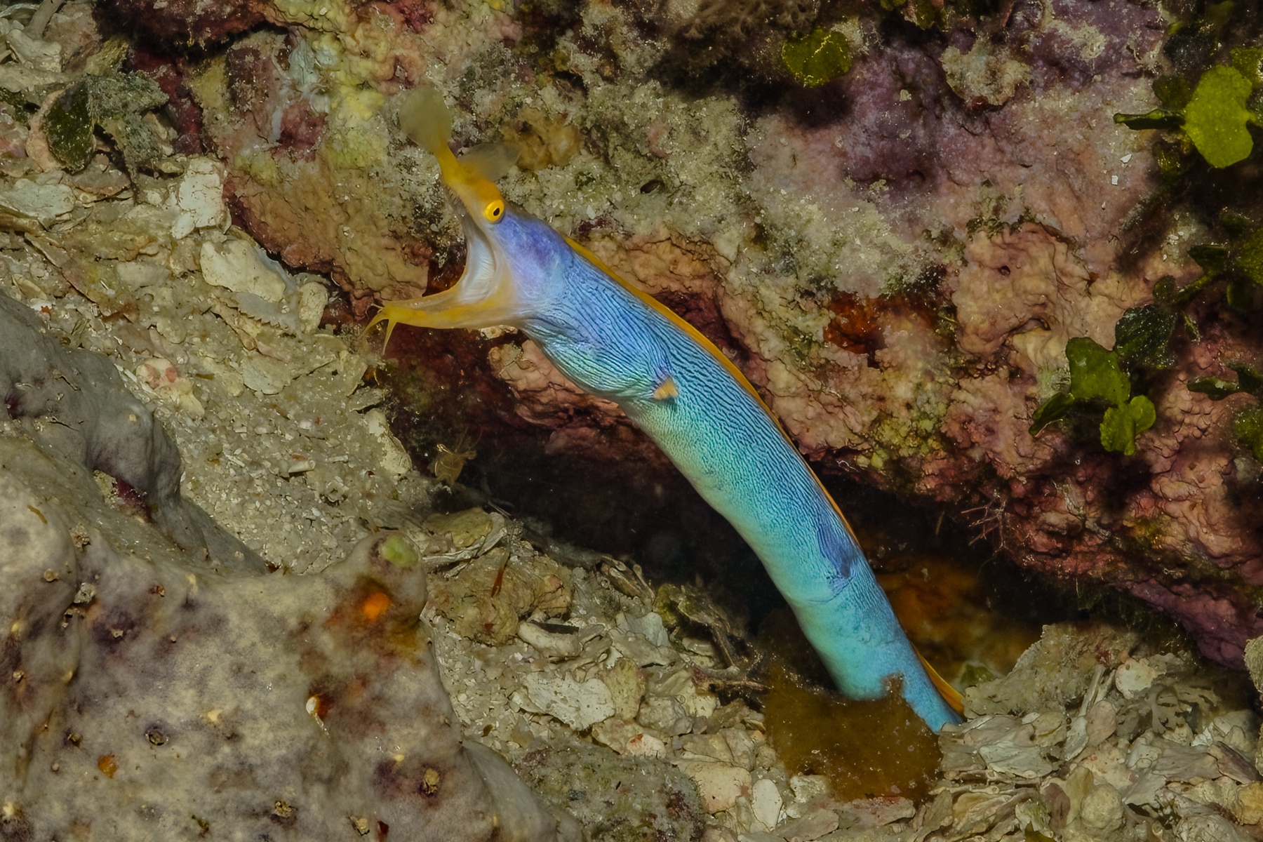 We saw several geometric moray eels, apparently very common, although I can’t remember having seen one before.