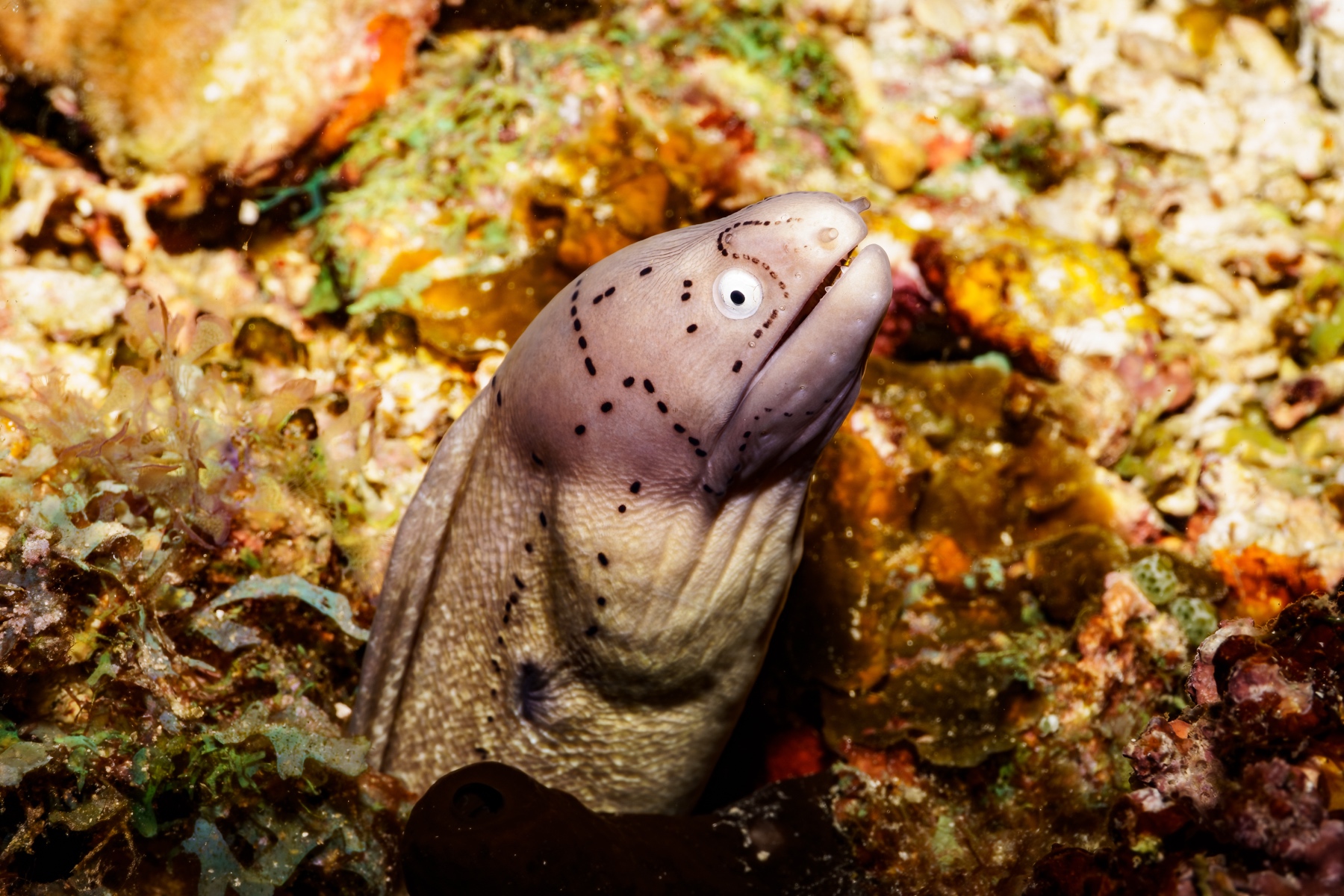 The longer journey proved more than worthwhile. We were rewarded with some breathtaking corals —vivid, intricate, and almost impossible to capture fully in still photographs, especially with a macro setup. Liana’s video (watch in 4K if possible) comes closer to conveying the sheer spectacle, yet even it falls short of the experience in person. With stronger video lighting, perhaps one could come nearer to revealing the true magnificence of that underwater world in full colour. **