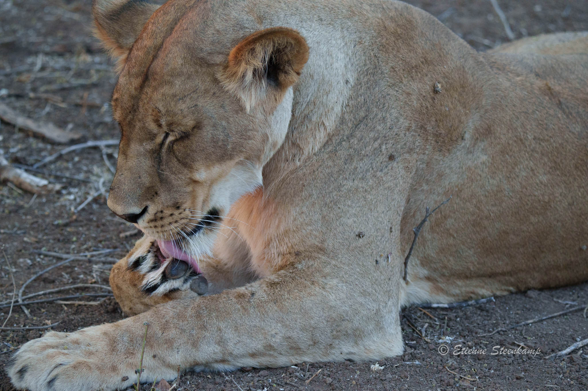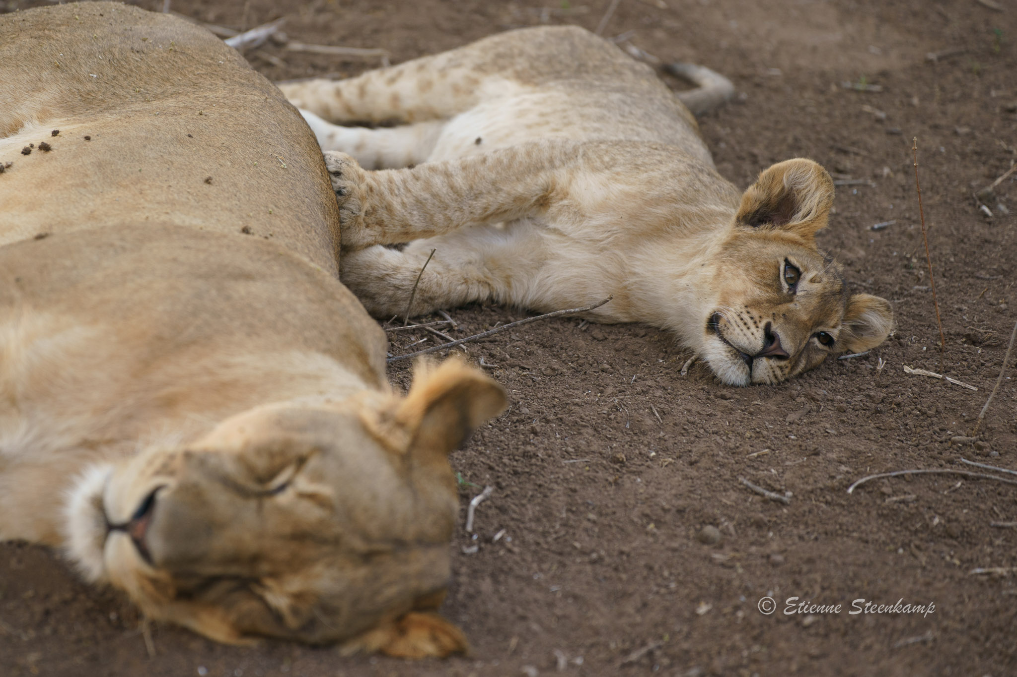 After settling into our very comfortable tented room, we went for high tea, followed by a game drive with Lovies and our tracker, Pontsho, seeing some very lazy lionesses with their young,