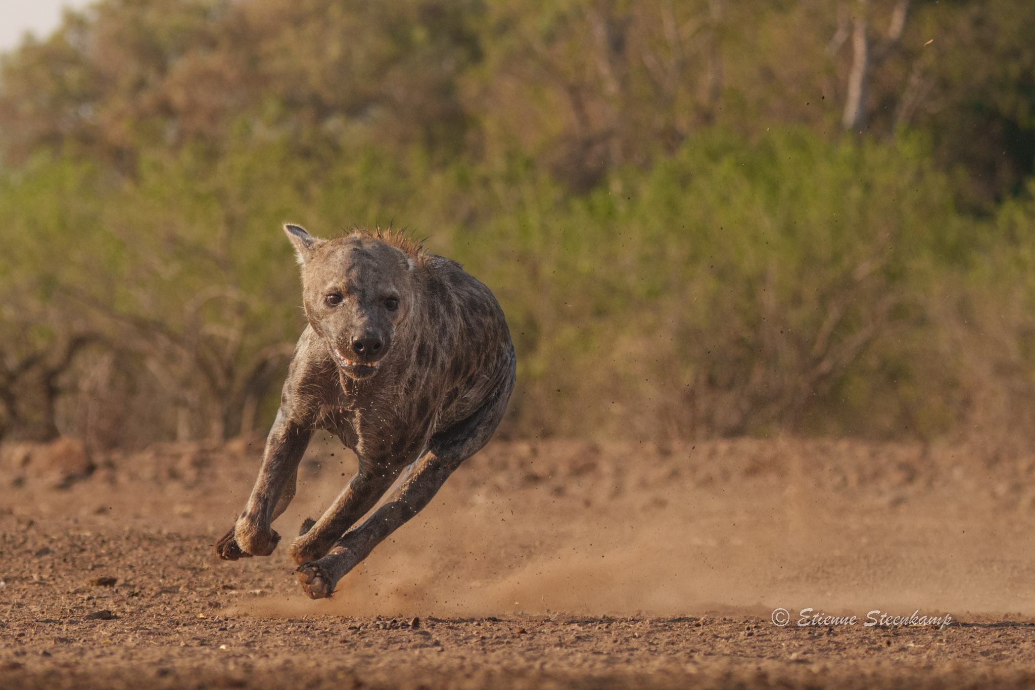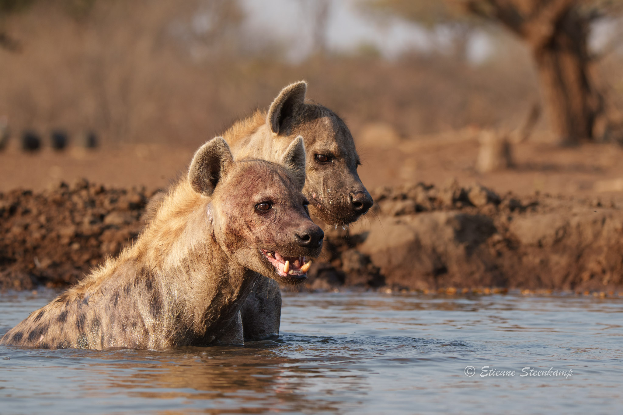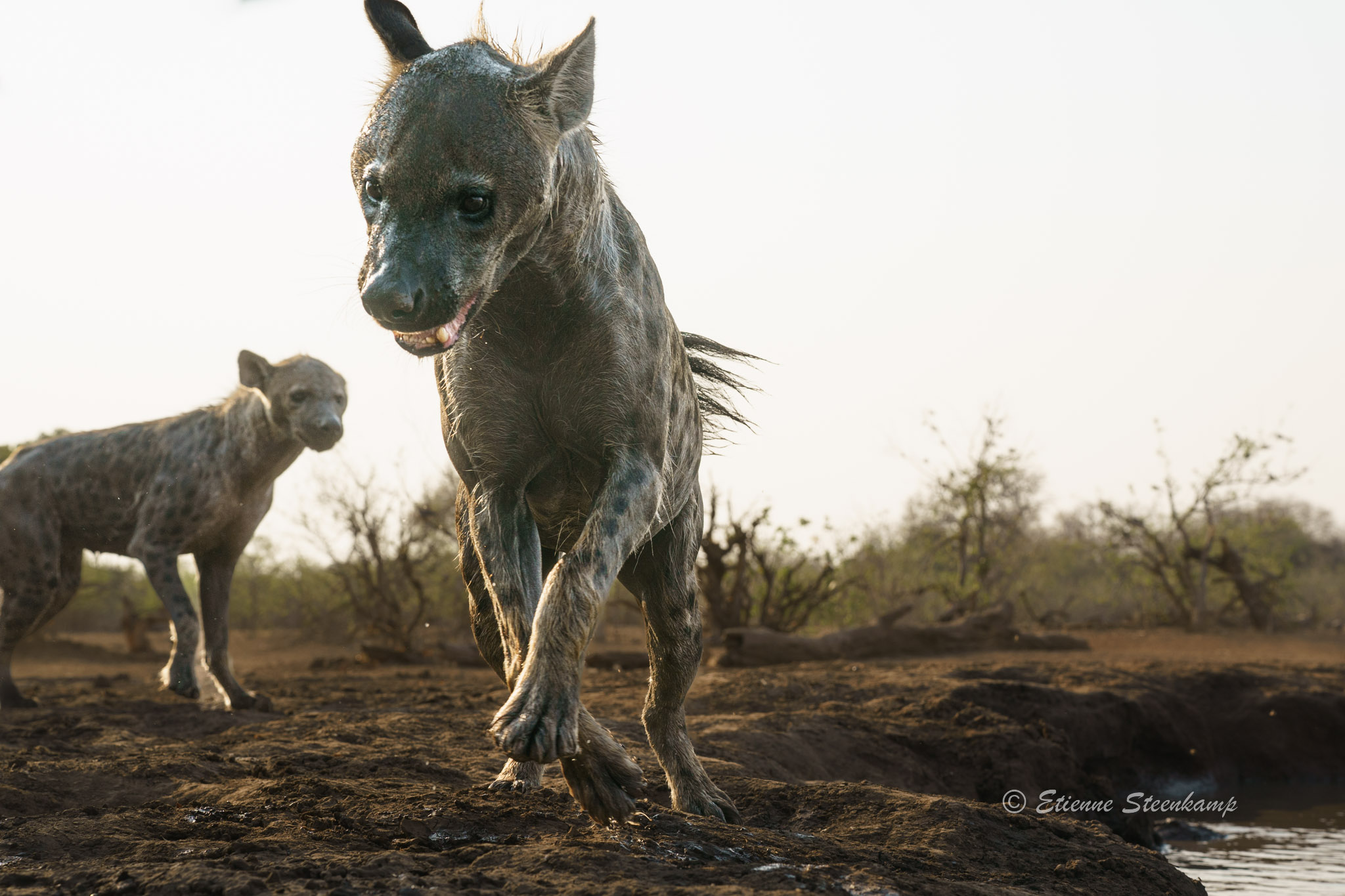 For our last morning at Mashatu, we had booked a session in the photographic hide, where we had the most amazing experience, with two hyenas coming to play in the water hole. They eventually came right up to the hide and seemed quite curious about our camera equipment.