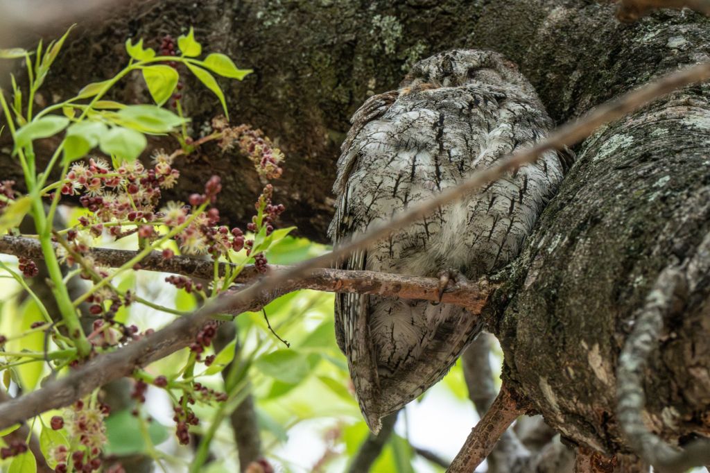 A Scops owl, very well hidden in a tree and pointed out to us by the SanParks staff member at the picnic site: