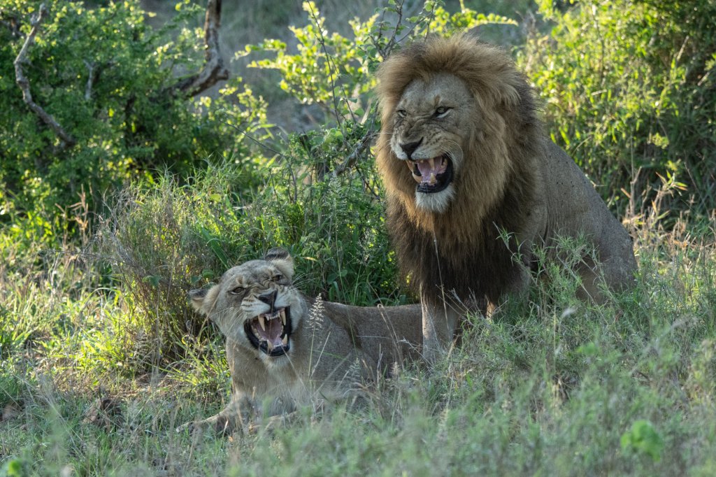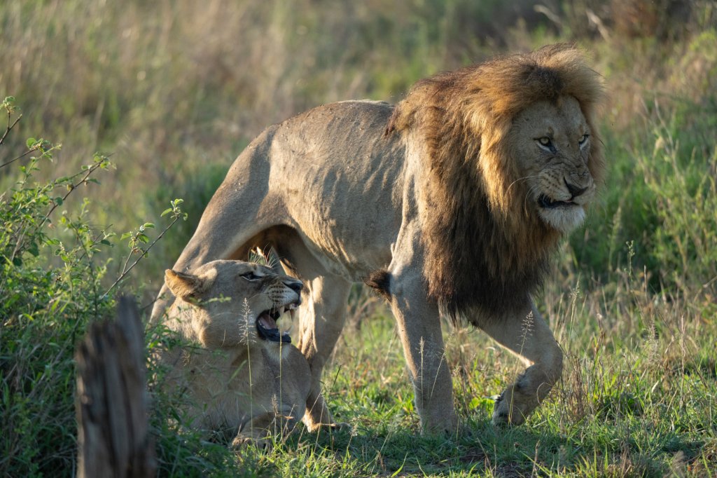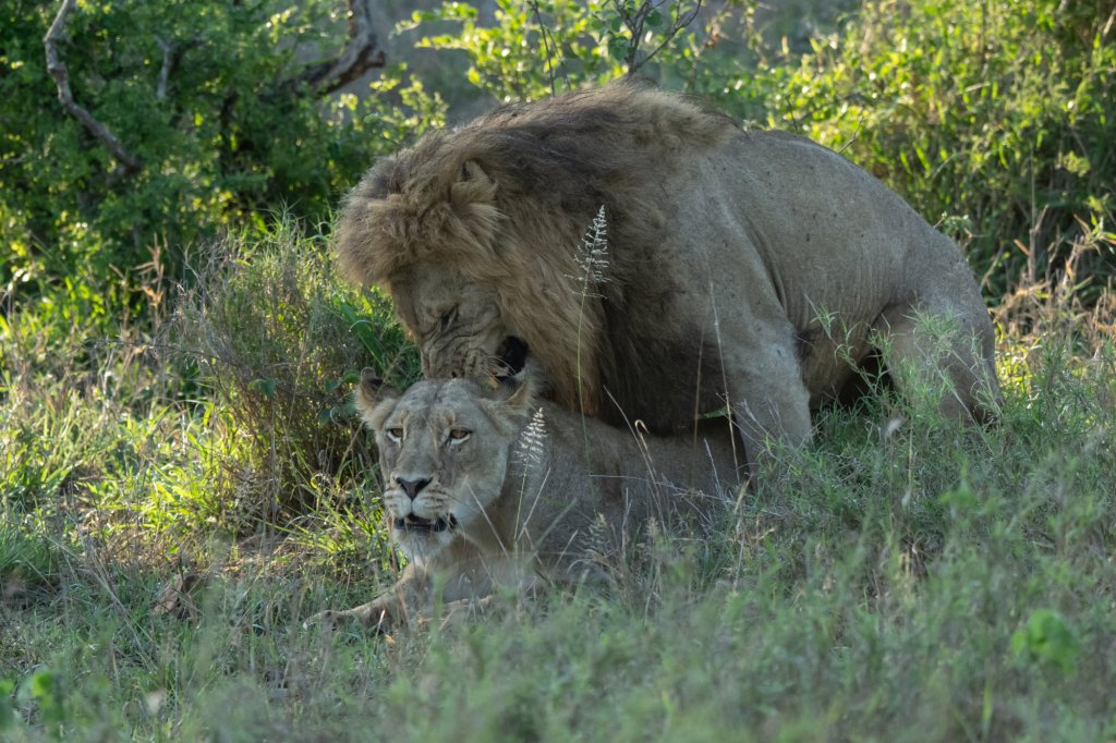Within minutes of being on the road, we came across our first sighting of the day, a lion couple mating.