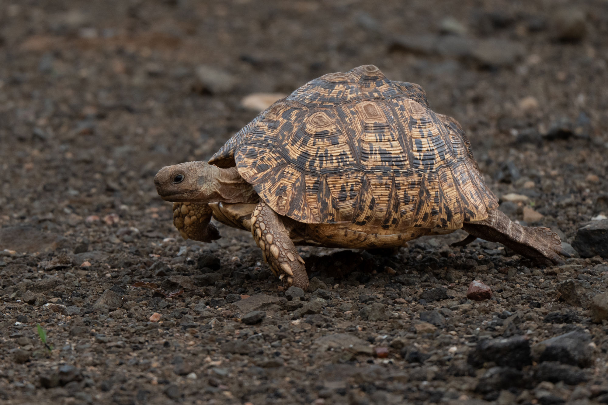 On the way there, we still had one last surprise: a leopard trying (unsuccessfully in the time we had there) to crack a tortoise’s shell
