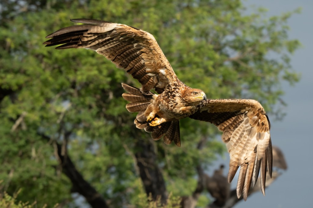 After a few hours rest back at camp, we left for a late afternoon drive. We soon saw a Wahlberg’s Eagle taking off from a low tree next to the road.