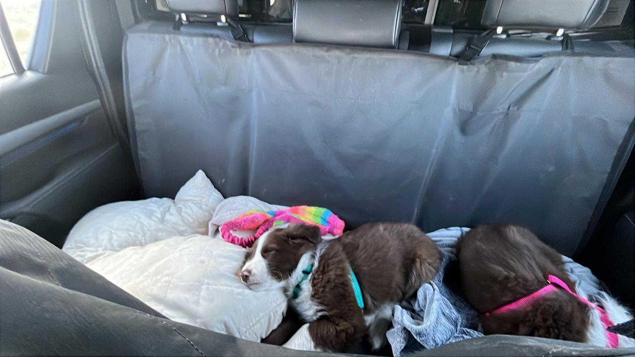 An early morning start, saw us collecting the puppies in town for the long drive home.