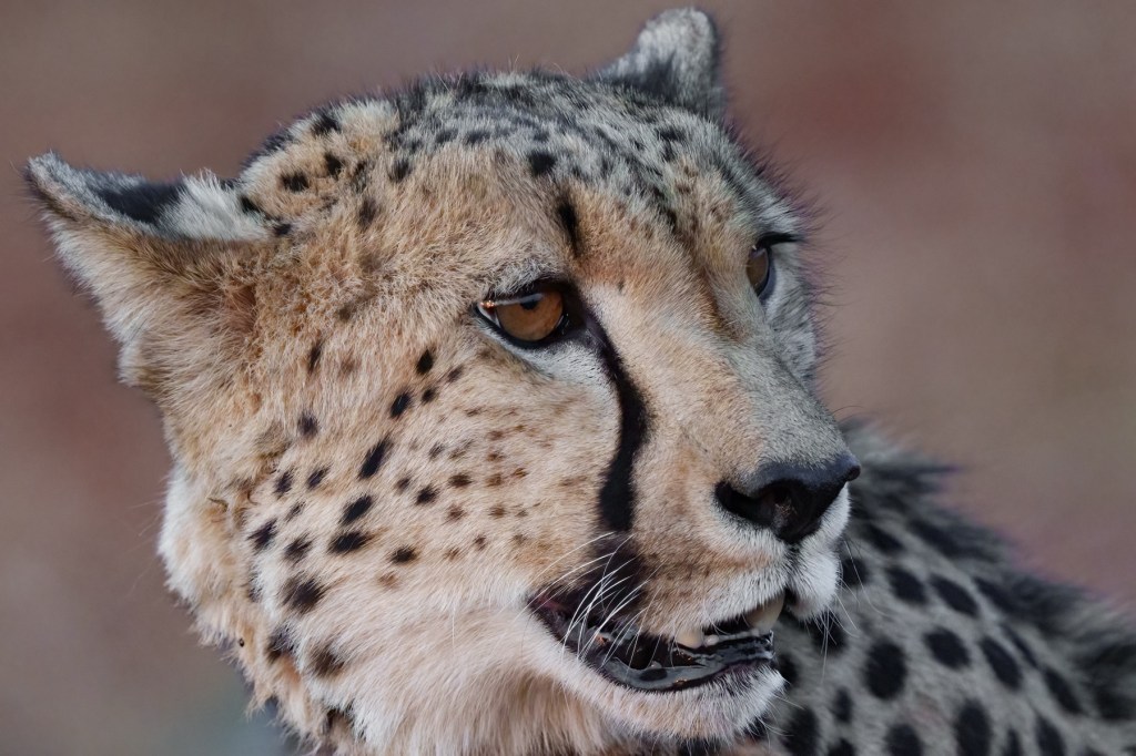 After tea, we set out on our first game drive. Our guide, Sam, informed us that the cheetahs had been spotted at the opposite end of the reserve and that we could choose between a hard drive to get there in time, or a leisurely game drive which would not allow us enough time to get to see them. Since we were keen to see them and one other couple on the vehicle, who were on their last day at Madikwe, were equally keen, the choice was made to go for the cheetahs. Having found them, I was slightly disappointed to notice that both were collared. This was understandably necessary from a conservation perspective, since the reserve had recently lost two females, only had four males left and were trying to study their behaviour before reintroduction of more females. From a photography perspective, this meant that I had to stick to tightly framed and cropped head shots if I did not want the unsightly collars in my photos.