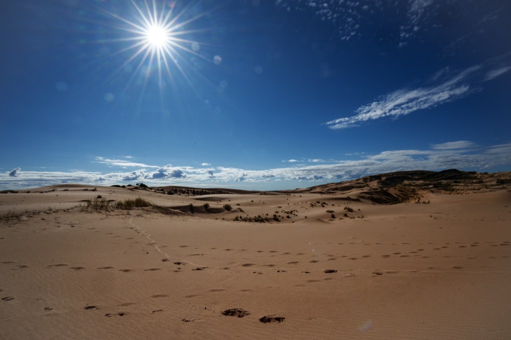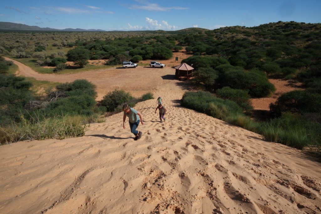 Witsand is an interesting geological phenomenon, with white sand dunes in the otherwise red Kalahari sands. In the right conditions, these dunes make a roaring sound when you walk on them, but unfortunately, due to the recent rains, we did not get to experience this. Nonetheless, it was an interesting place to visit and a bit of a challenge climbing the dunes.
