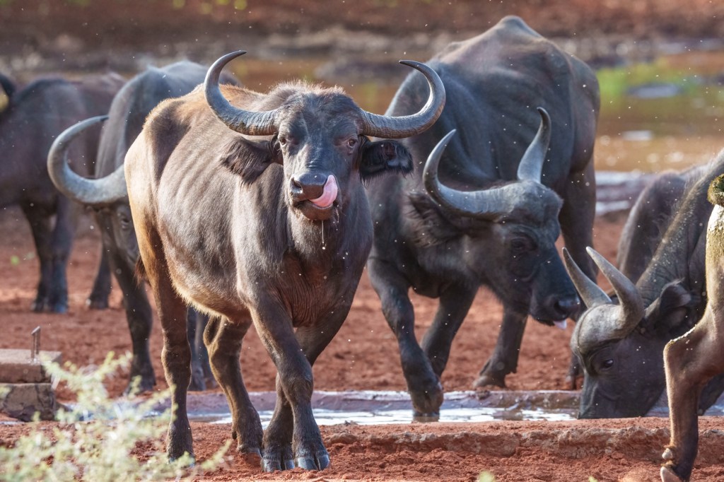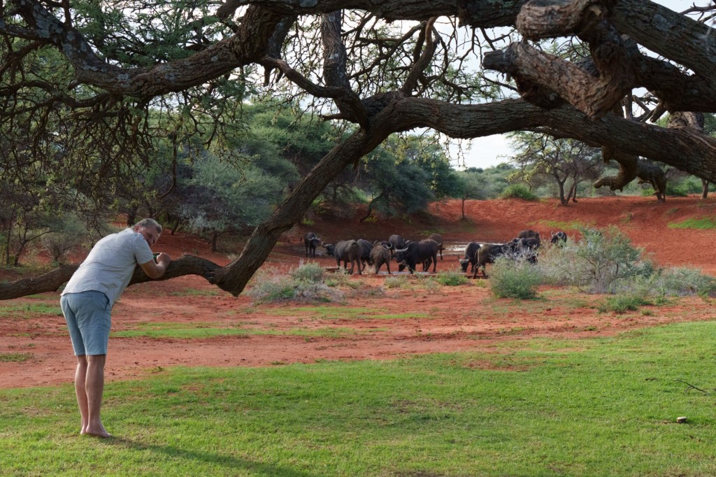 At Mokala, we stayed at Haak en Steek, which consists of a two bedroom cottage and a few camp sites next to a water hole. We were greeted by a herd of Buffalo, coming to drink at the water hole.