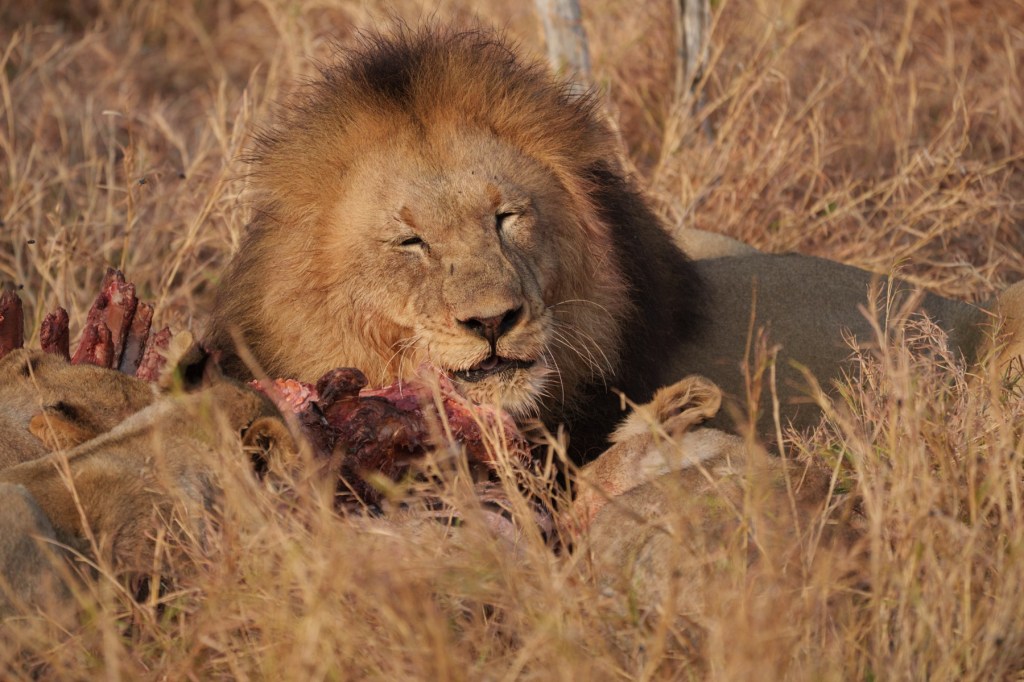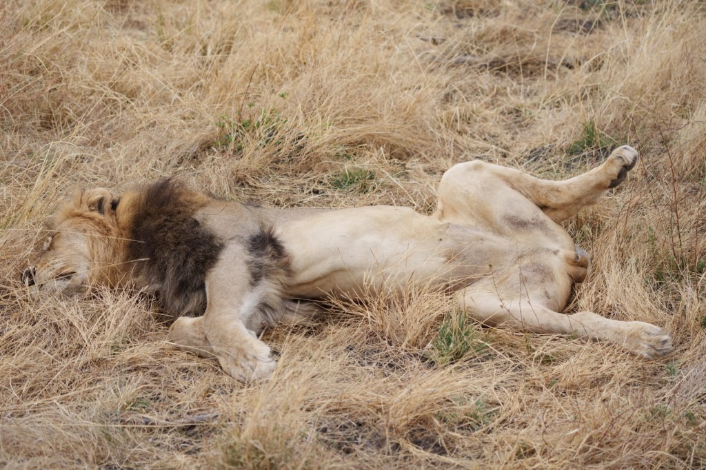 and also found the lions we had seen at the zebra kill on our second day, now relaxing and sleeping in the grass. One male briefly acknowledged our presence, before lying down again.