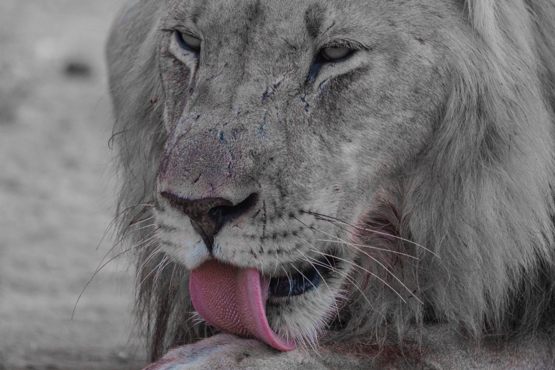 All too soon we had to move along and allow others their turn at the sighting. Driving along on our way back to the lodge and aware that we were going to be quite late for brunch, we just had to make a brief stop when we saw a group of four lions chewing on the remains of a wildebeest right next to the road.