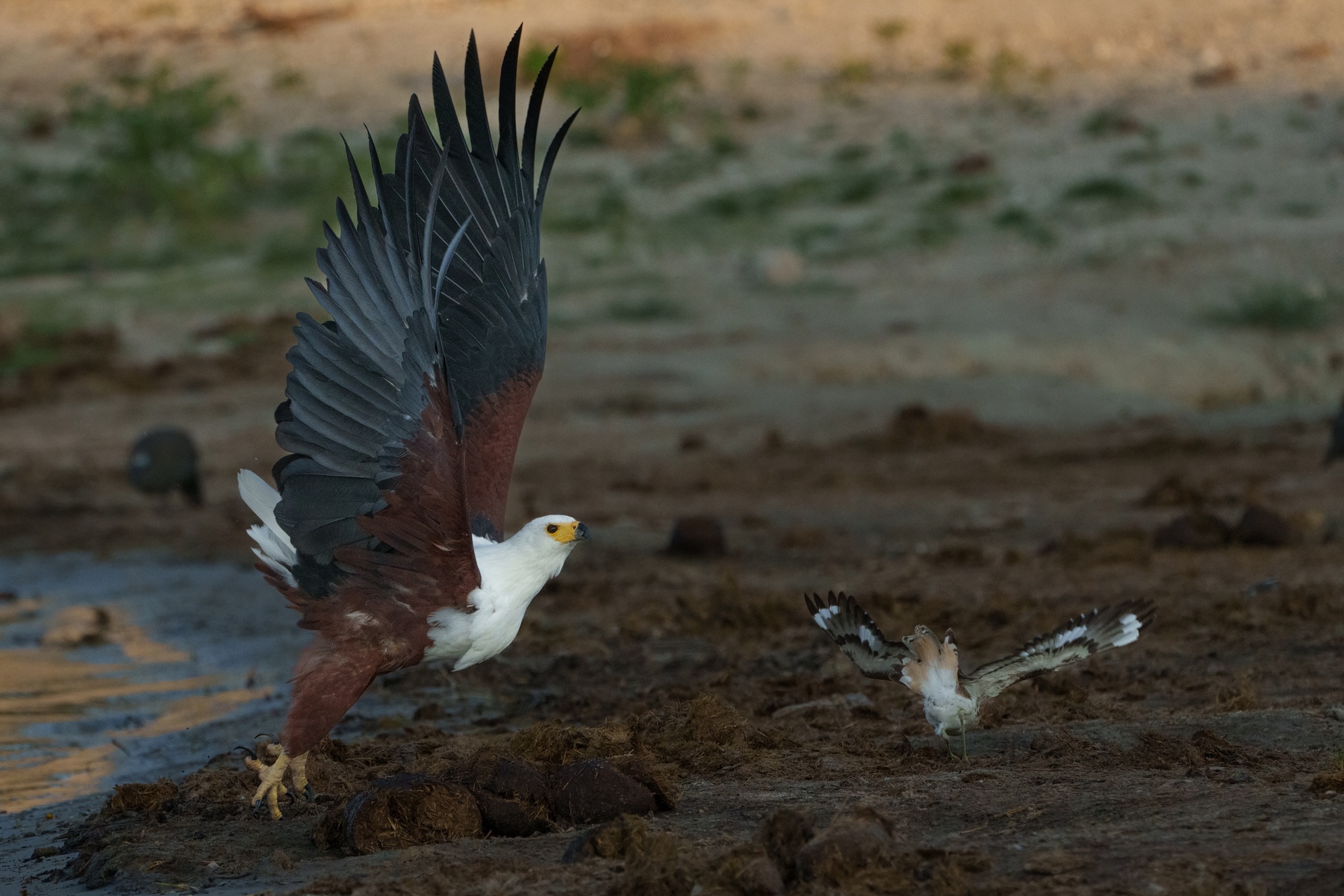The usual early morning start, after a quick cup of coffee, had us out on our game drive as the sun was rising, providing a lovely background for a shot of a Pale Chanting Goshawk in a dead tree.